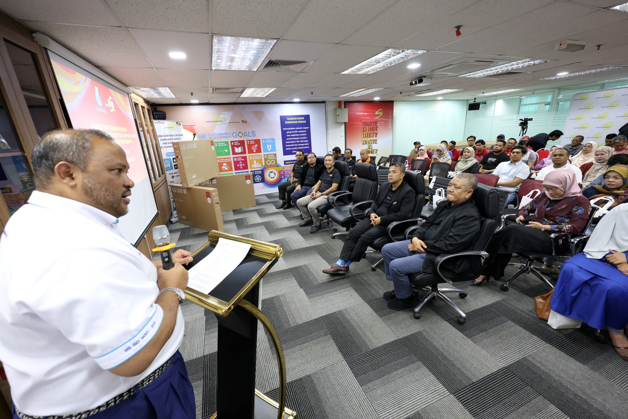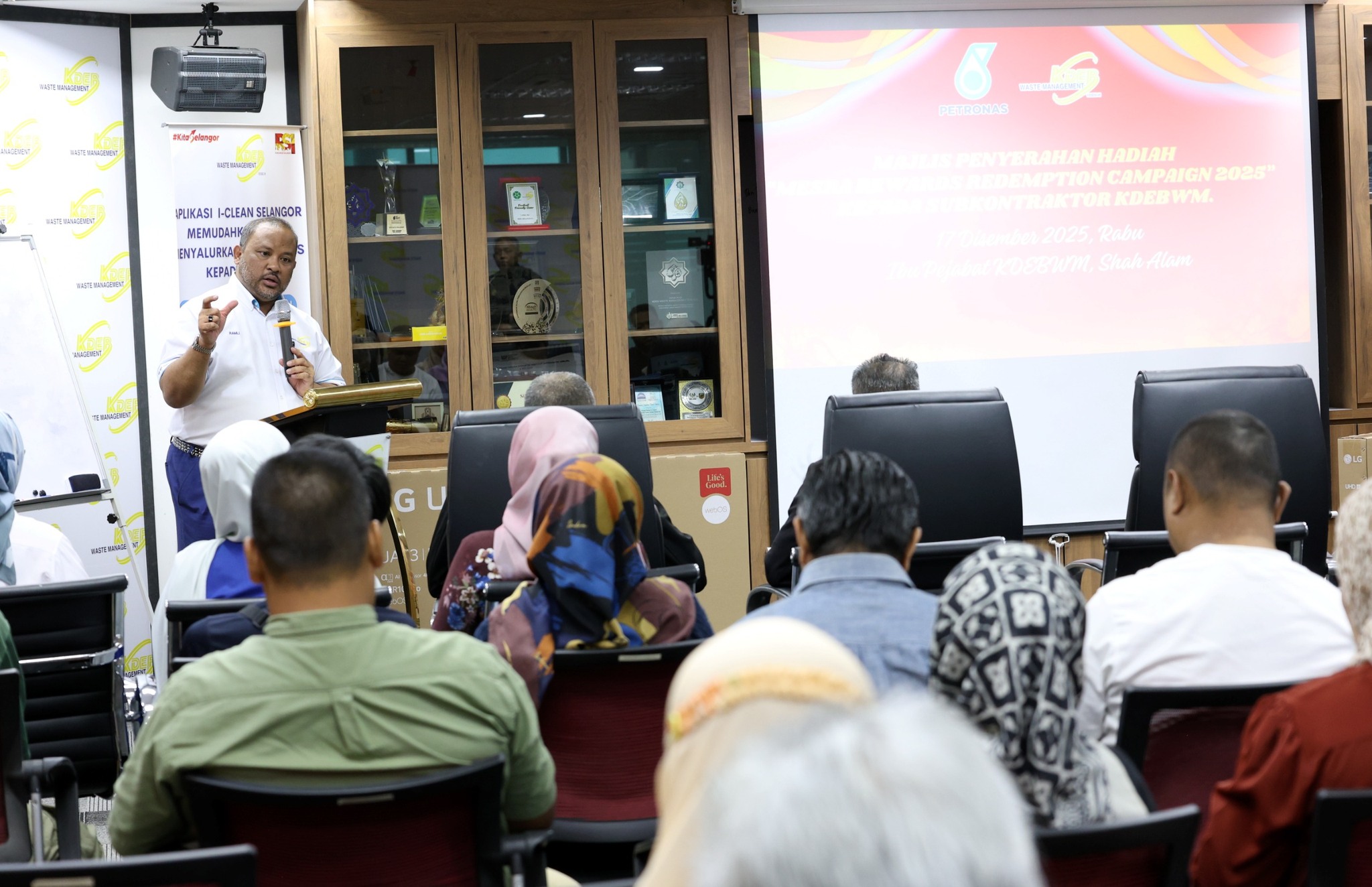 17 Disember 2025 , Shah Alam- Seramai empat puluh (40) subkontraktor lantikan KDEB Waste Management (KDEBWM) telah diraikan dan dihargai diatas dedikasi mereka sebagai pengguna smart fleet card PETRONAS sekaligus telah melayakkan mereka menerima hadiah Smart LED TV berukuran 55 inci. Hadiah disampaikan oleh YBhg. Dato’ Haji Ramli Mohd Tahir, Pengarah Urusan KDEB Waste Management.